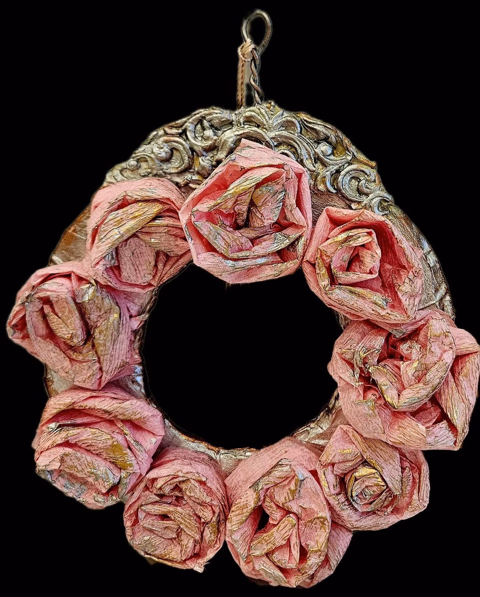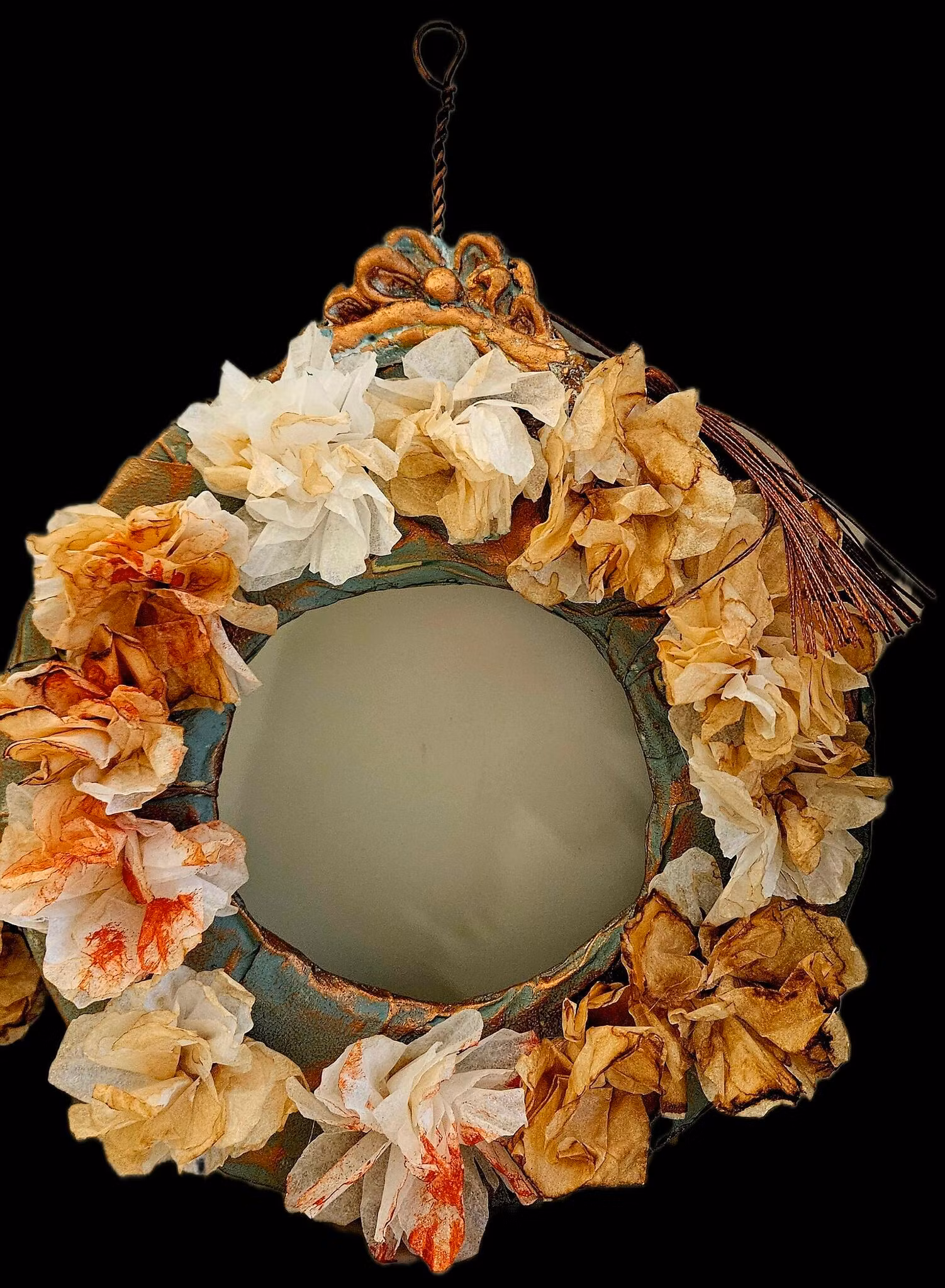 Krans - Blom I lager. 60 kr LÄGG I KORGEN Material: Kartong, kräppapper & modellera.Hantverkare: Martin, Angelina & Isabella.Pris per st.