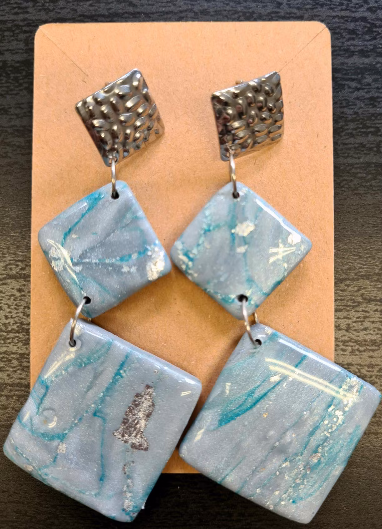 Örhänge "Lakris 2" I lager. 50 kr LÄGG I KORGEN Material: Epoxy, silverblad & Fimo lera.Hantverkare: Amanda A, Martina H, Angelina G & Hanna H